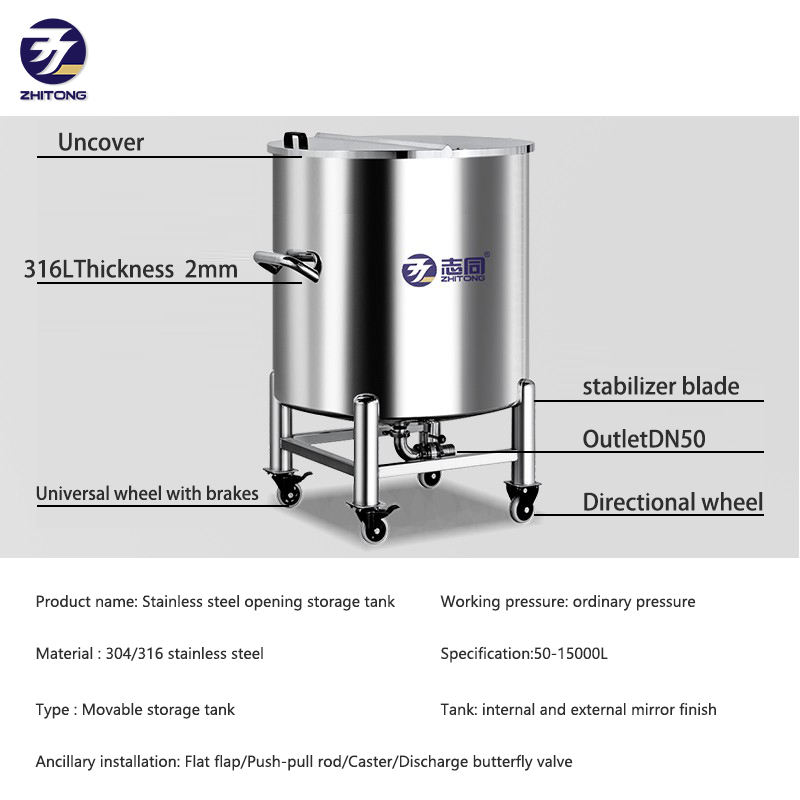ZT-500L Double Wall Stainless Steel Storage Tank - 1T Capacity, ISO9001 Certified, Round Shape for Liquid & Food
