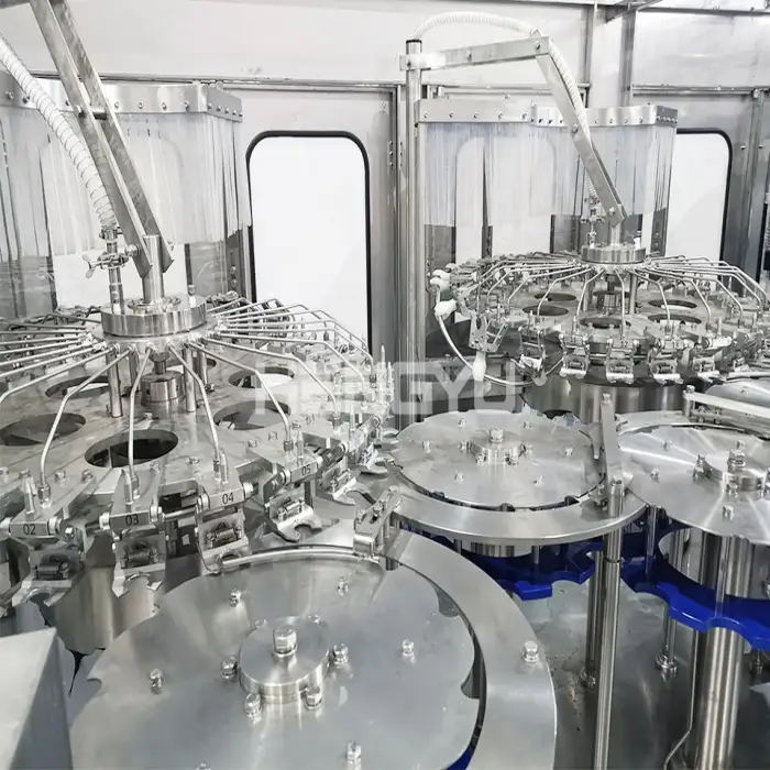 The machine is ideal for beverage production facilities, mineral water bottling, soft drink filling, and beer bottling processes.