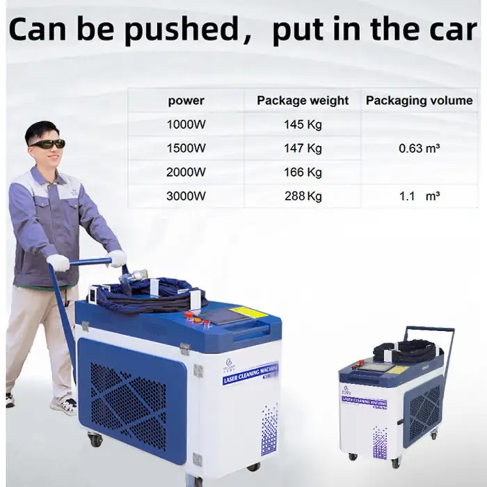 Industries such as automotive, construction, and metal processing can benefit from using this laser cleaning machine for various applications.