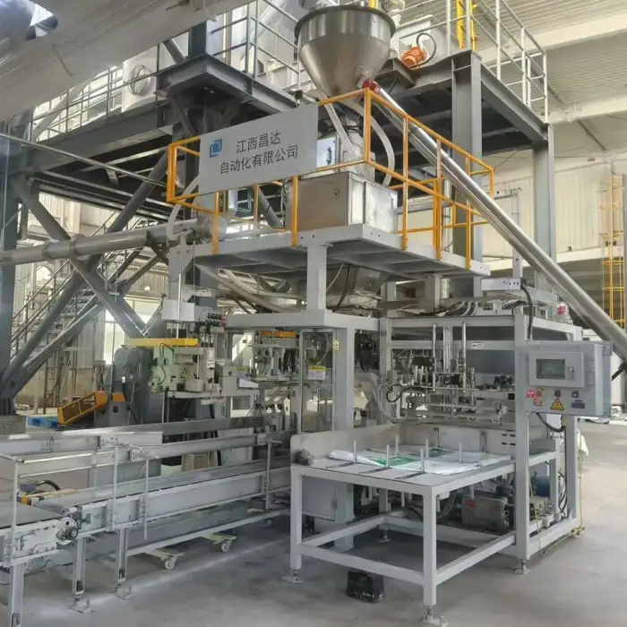 The machine is designed to pack products in sizes of 25KG, 50KG, and 100KG.