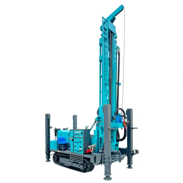 This unit is a rotary drilling rig, suitable for conventional rotary water-well drilling operations. For extremely hard rock or special formations, additional down-the-hole hammers or different tooling may be required.