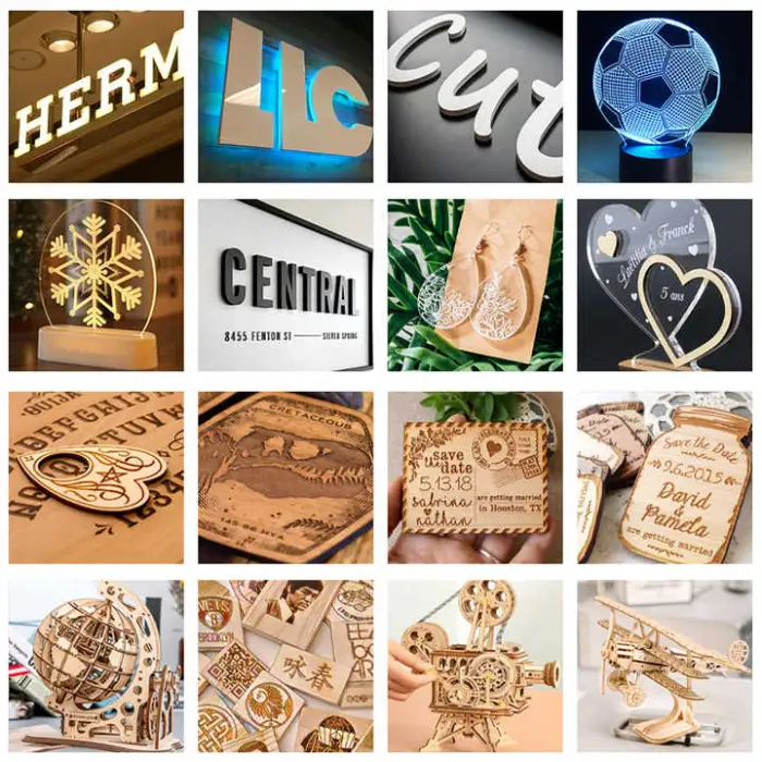 You can create a variety of projects such as signage, intricate crafts, custom gifts and awards, prototypes, personalized items, and engraved logos.
