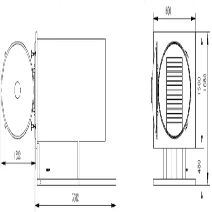 The dimensions of the freeze dryer are 3082mm in length, 1600mm in width, and 1962mm in height.