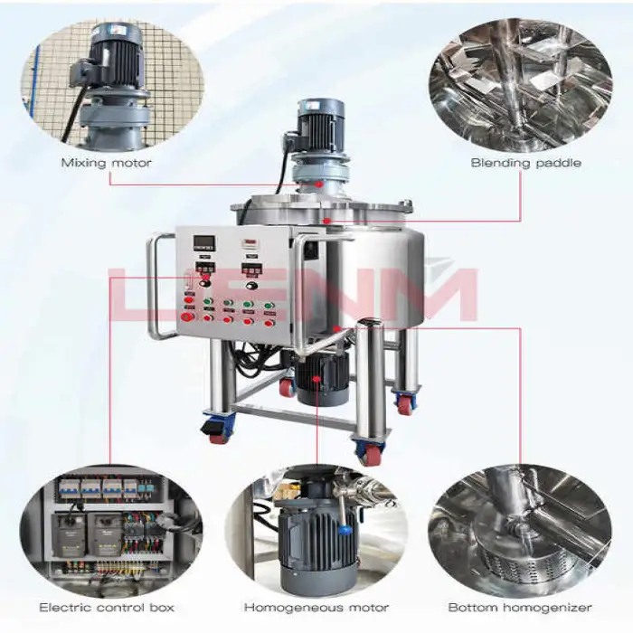 It is ideal for mixing cosmetic products like lotions and creams, storing and mixing soaps and shampoos, handling liquid paints, and processing other industrial liquid products.