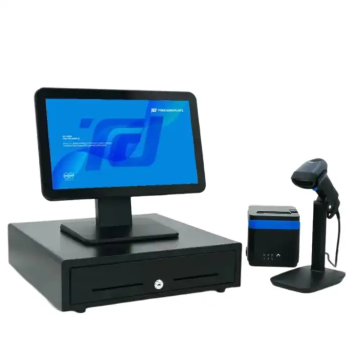 The TouchDisplays POS system features a 15.6-inch LCD screen with a resolution of 1920x1080.
