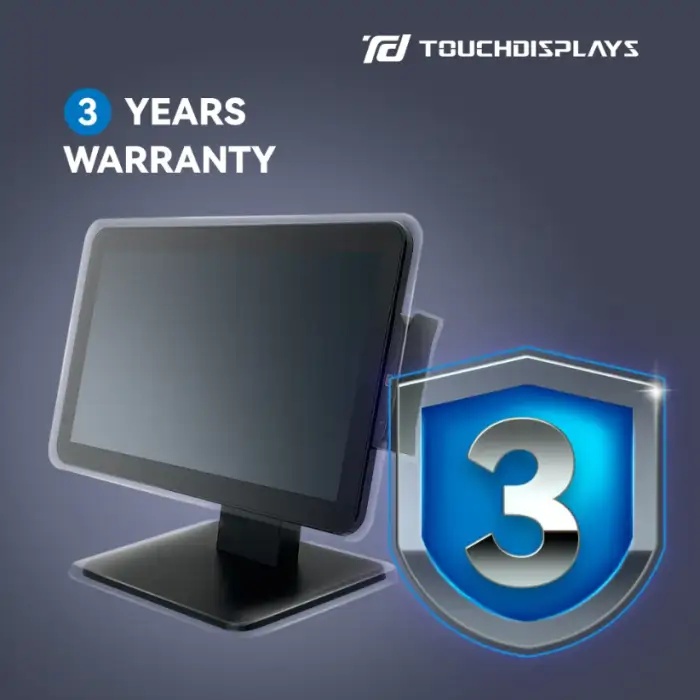 The TouchDisplays POS machine comes with a 3-year warranty, providing peace of mind for long-term use.