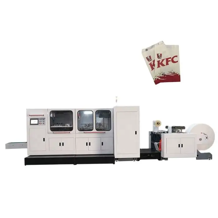 This machine is suitable for making V sharp bottom paper bags, which are commonly used for various products.