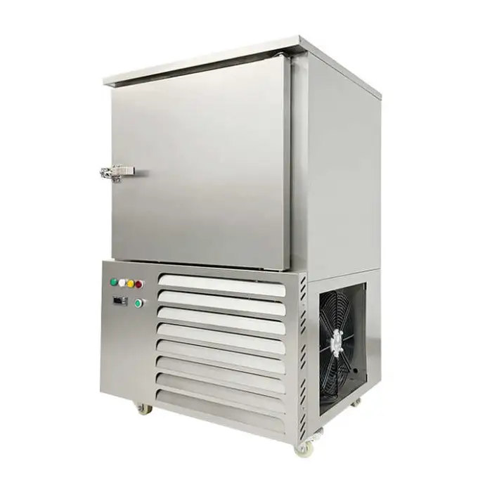 The blast chiller is intended for rapid freezing/preservation (blast chilling) to lock in quality. For long-term storage, transfer products after freezing to a dedicated freezer or cold storage unit designed for sustained low-temperature storage.