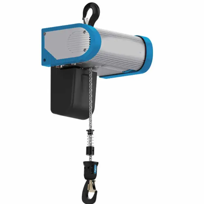 The hoist is powered by electricity, which provides efficient lifting capabilities.