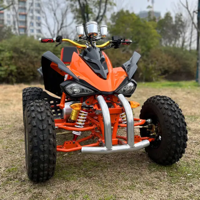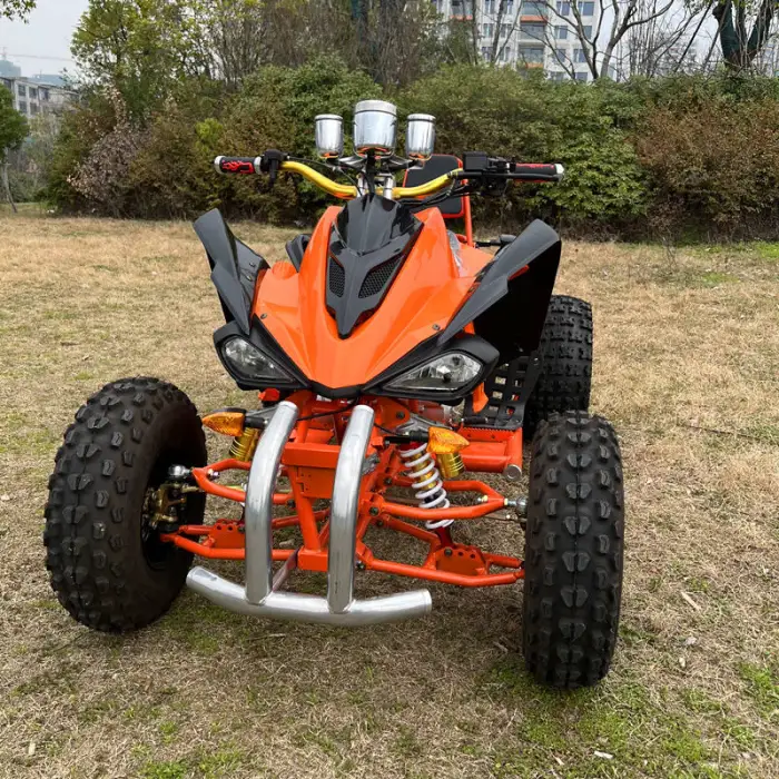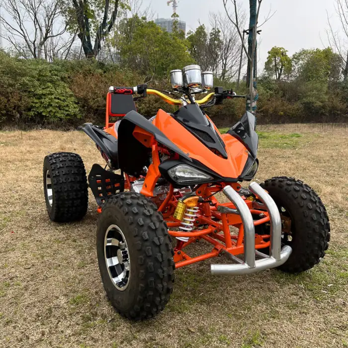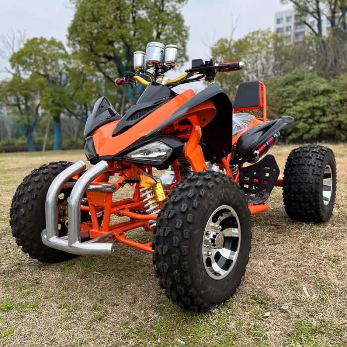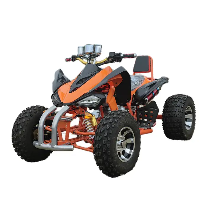 The quad bike is equipped with a front disc and rear disc brake system for reliable stopping power.