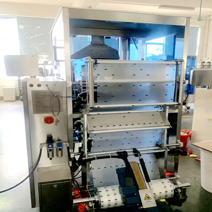 The machine supports laminated film, PE film, and aluminum film.