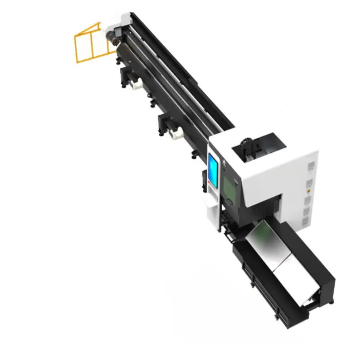 The machine can cut various metal types including stainless steel, carbon steel, and aluminum.