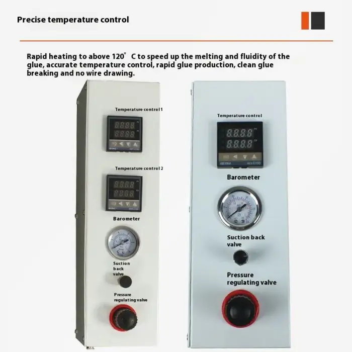 Yes, it features a constant temperature heating device for optimal glue dispensing performance.