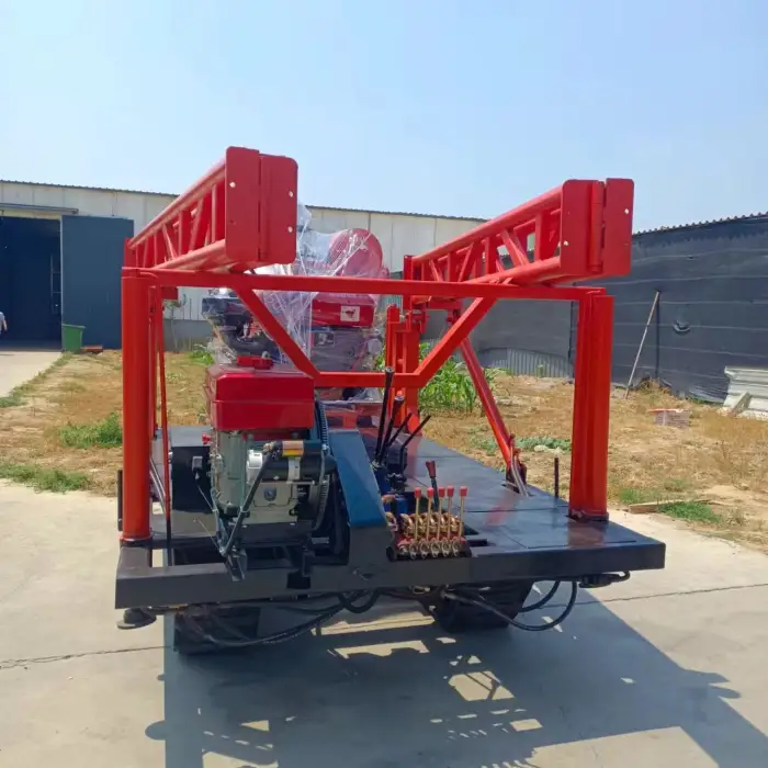 The rig is designed for water-well drilling and geological exploration. It can be configured for common well-drilling techniques (rotary, reverse-circulation, etc.) depending on selected accessories and tooling—confirm the intended drilling method with the supplier to ensure compatibility.