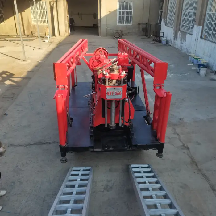 The rig is described as suitable for versatile terrain navigation, but because it lacks crawler tracks you may need an appropriate transport or mounting solution for very soft, steep, or highly uneven ground. It is best suited to sites accessible by truck/trailer or sites where the unit can be placed and stabilized for drilling.
