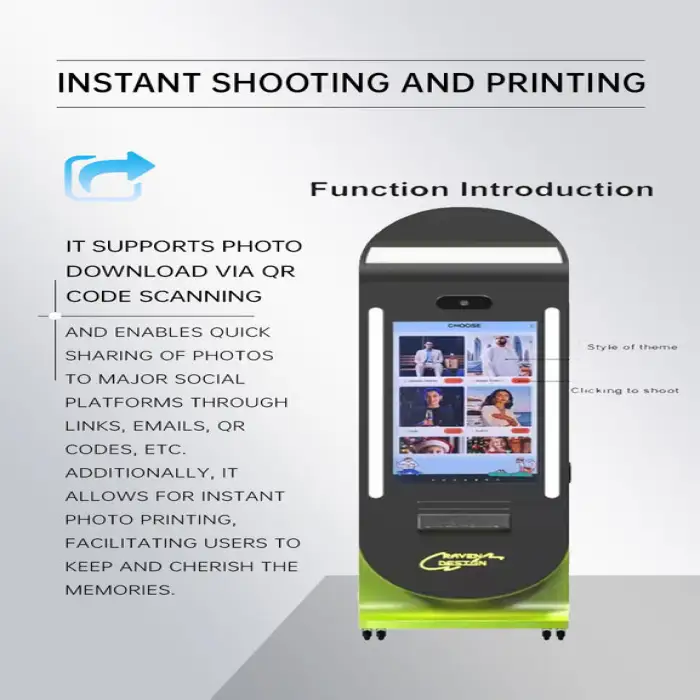 The photo booth offers self-service printing, allowing users to instantly print their selfies after taking them.