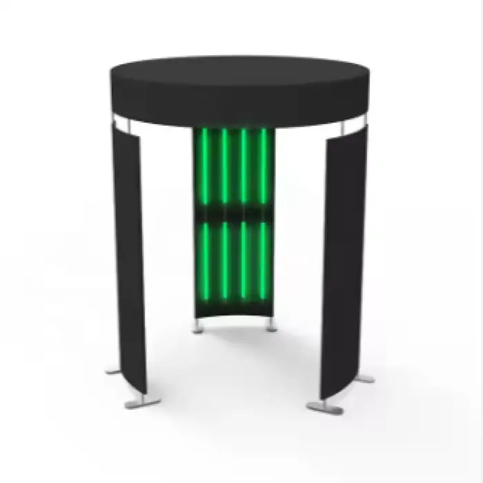 The enclosure features a tension fabric backdrop that offers a seamless flat display, ideal for events and trade shows.