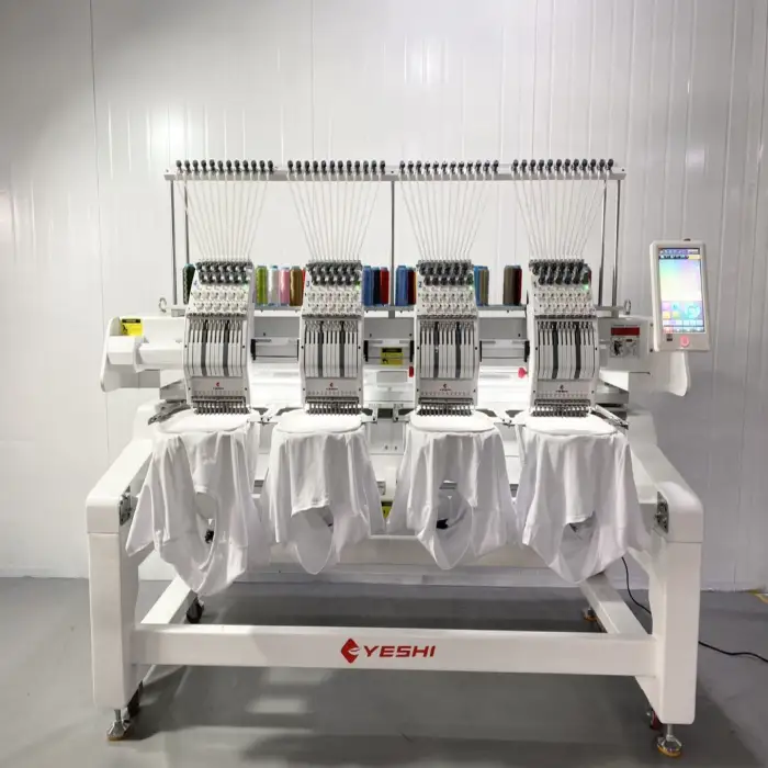 The Yeshai 4 Heads 12 Needle Embroidery Machine has a maximum stitch speed of up to 1000 stitches per minute.