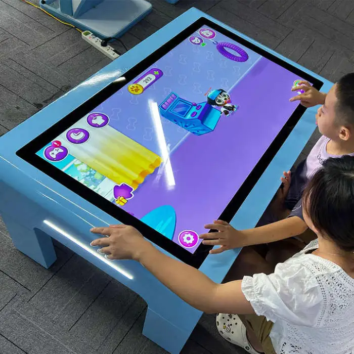 Yes, the large touch screen allows for multiple children to engage with the table simultaneously.