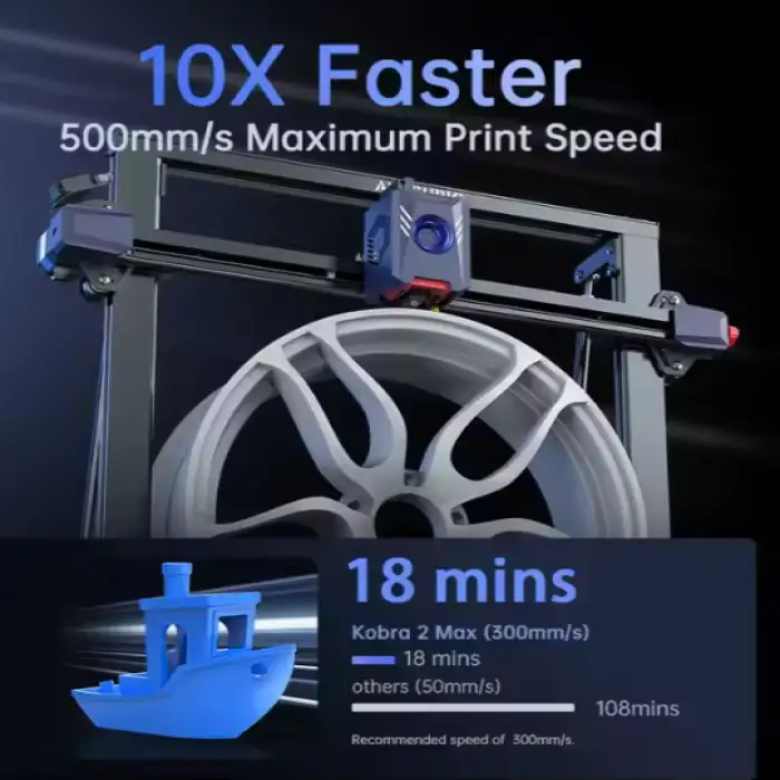 The Anycubic Kobra 2 Max has a maximum printing speed of up to 500mm/s, making it 10 times faster than traditional 3D printers.