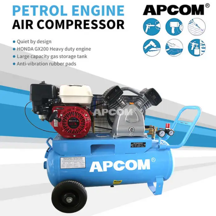 The compressor features an air-cooled system to prevent overheating during operation.