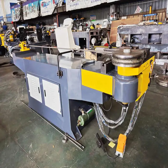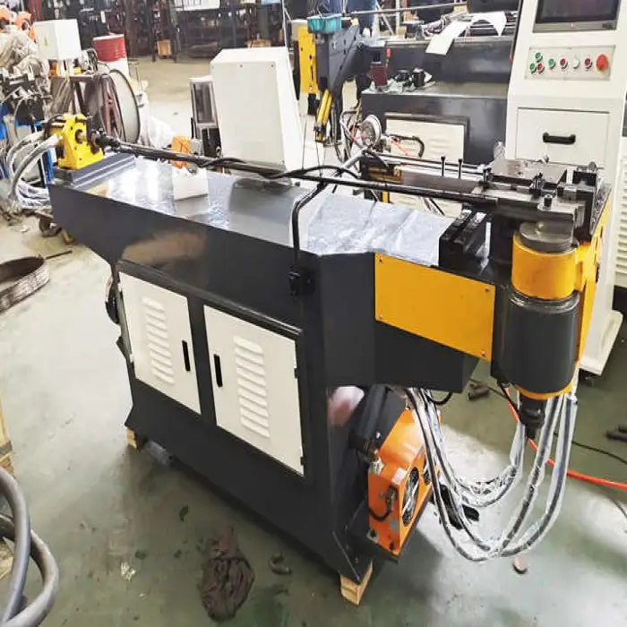 The machine can efficiently bend various materials including stainless steel, carbon steel, and aluminum.