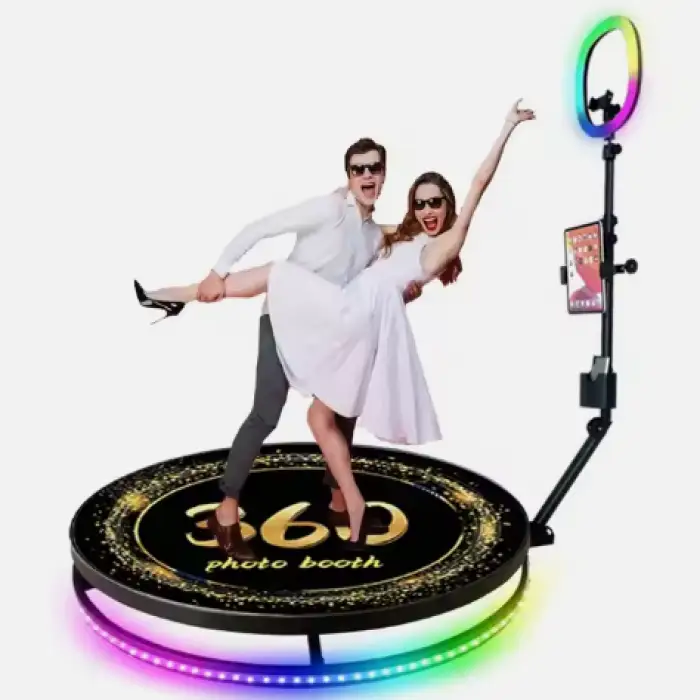 Yes, the photo booth features a 360-degree automatic rotating mechanism.