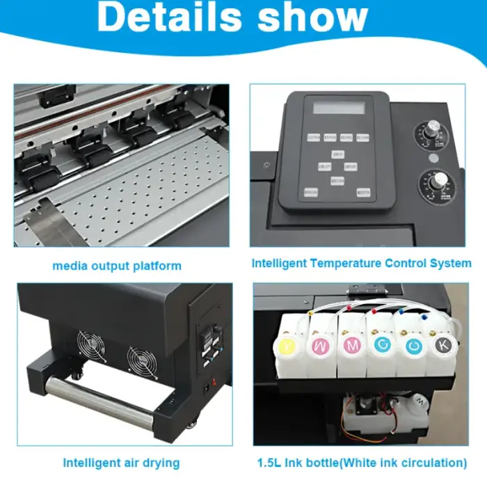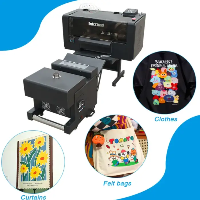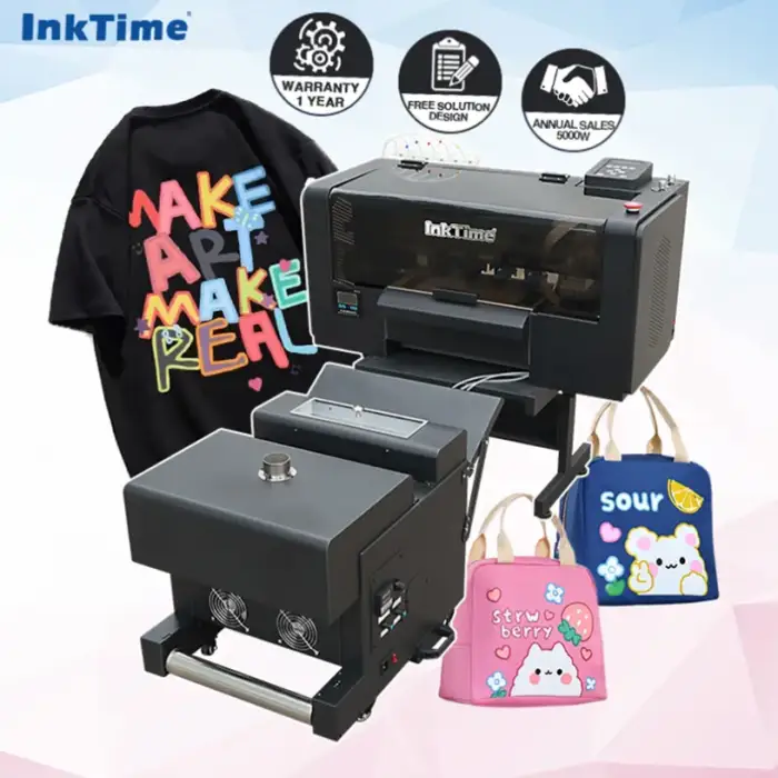 The printer uses CMYK + White inks for enhanced color range and opacity. The exact ink chemistry (e.g., pigment, dye, sublimation) is not specified in the descriptionβconfirm with the supplier to ensure compatibility with your textile substrate and transfer process.