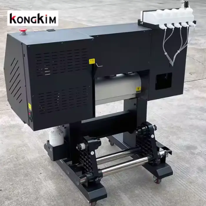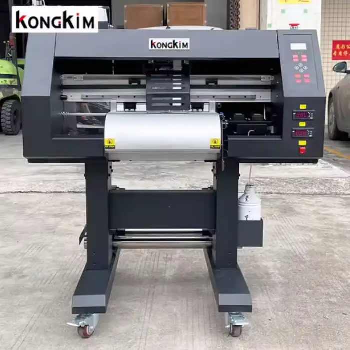 The KONGKIM KK-300E DTF Printer is equipped with dual XP600 print heads, providing fast and high-quality printing with sharp details and vibrant colors.