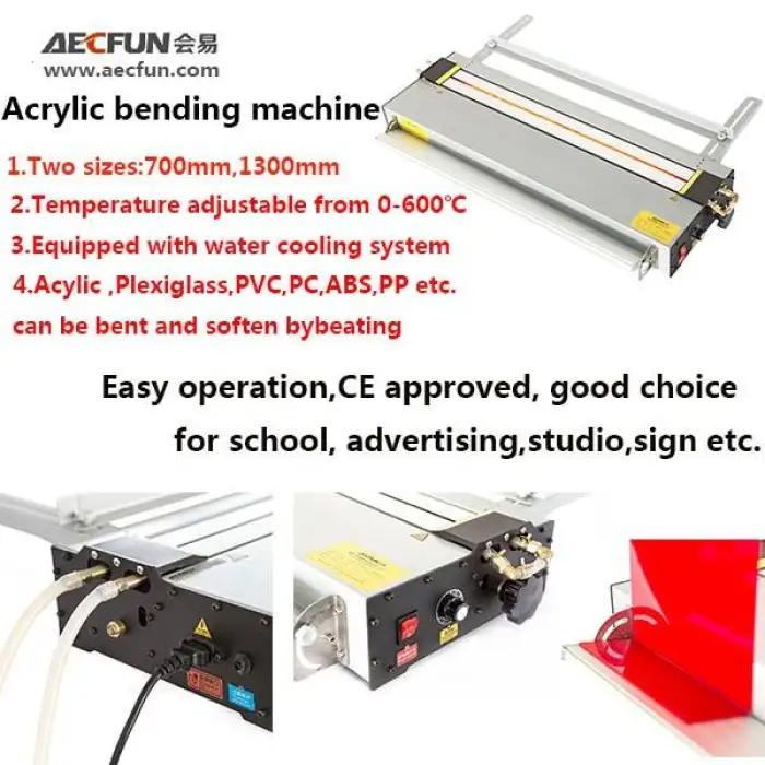 The ABM700/1300 is suitable for bending various materials, including acrylic and PVC.