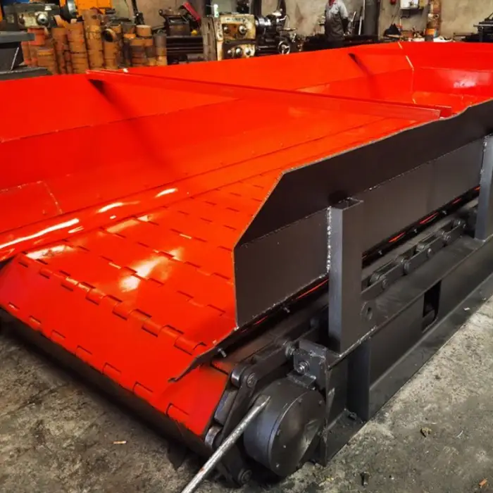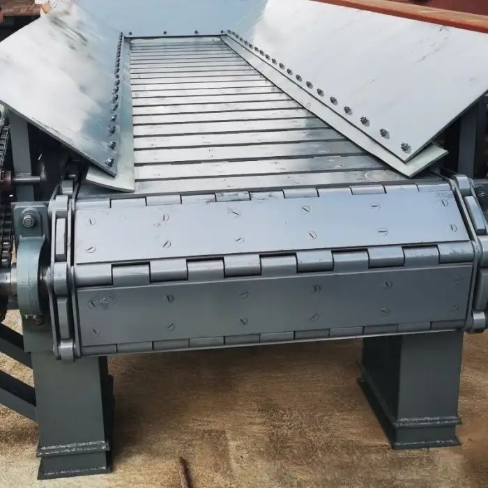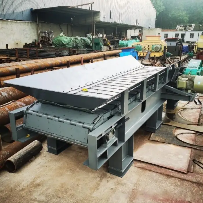 The feeder is constructed with an alloy wear-resistant steel chain and a chain plate made from 25Mn, ensuring durability.