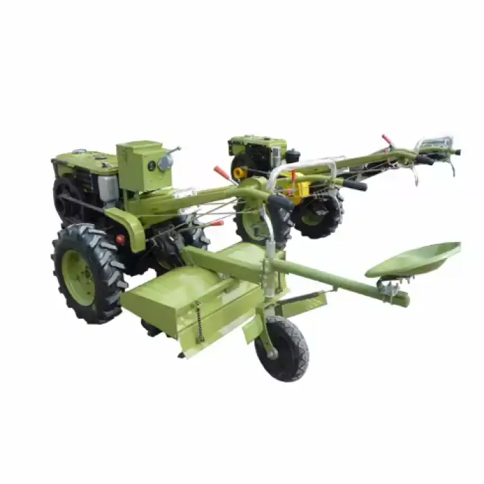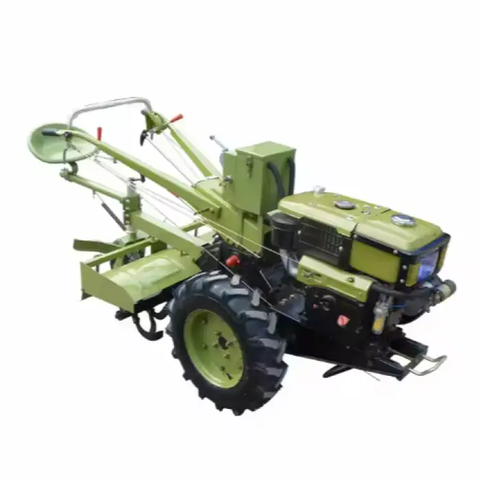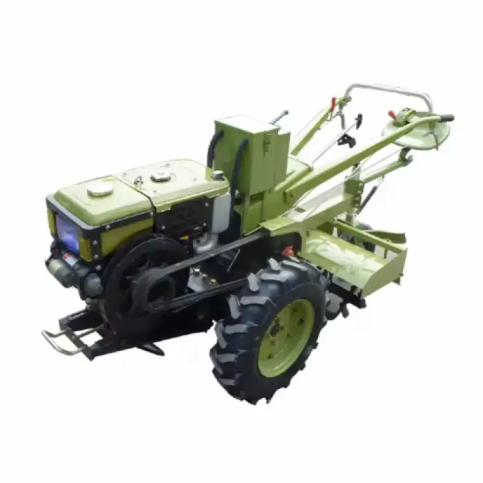 The walking tractor uses a water evaporative cooling system for optimal engine temperature.