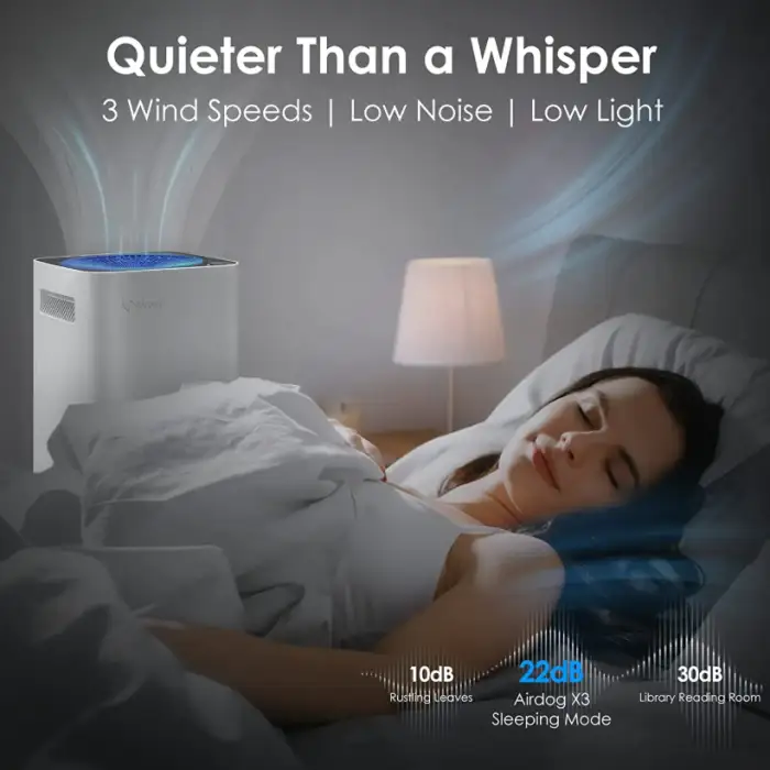The Airdog air purifier is equipped with real-time air quality sensors that continuously monitor your environment and automatically adjust the fan speed based on the detected air quality.