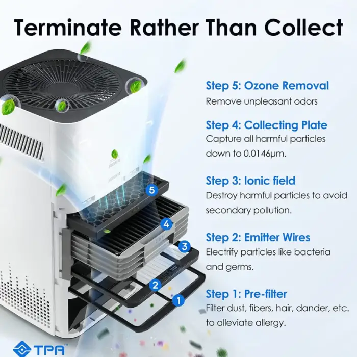 The HEPA-like technology in the Airdog air purifier effectively traps particles as small as 0.3 microns, including dust, pet dander, pollen, and bacteria, providing cleaner indoor air.