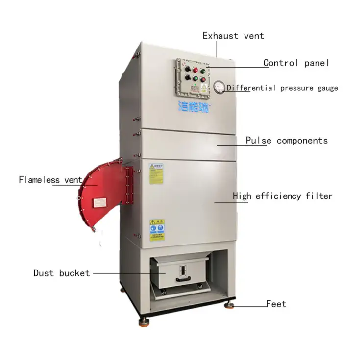 The pulse cleaning system helps to maintain the filter by providing bursts of air that dislodge dust and contaminants, making maintenance easier.