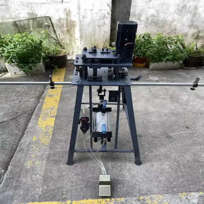 The machine is designed to process both aluminum and PVC materials, making it versatile for various door and window projects.