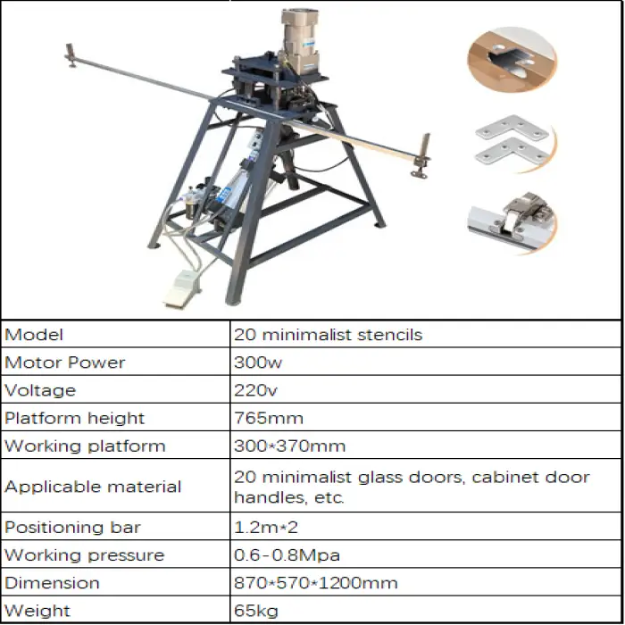 The machine is ideal for hinge drilling for aluminum doors and PVC windows, custom door and window fabrication, as well as small to medium-sized production runs.