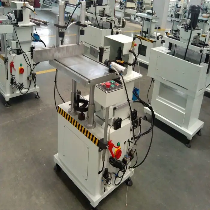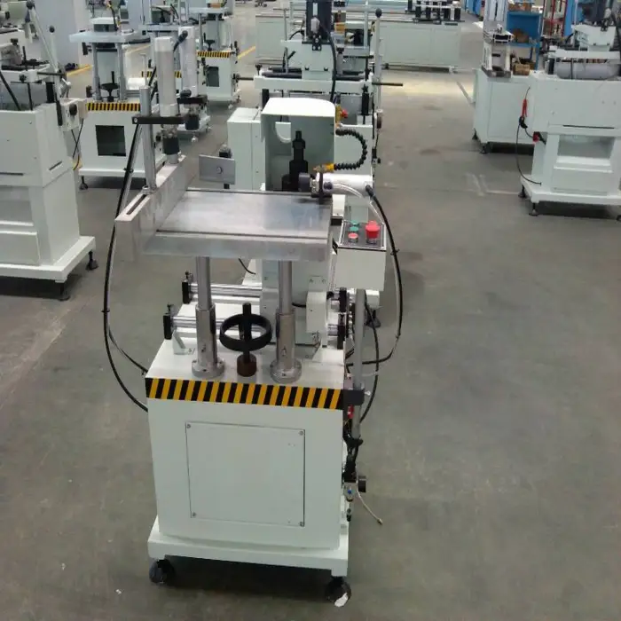 This machine is used in manufacturing and fabrication industries, particularly for milling aluminum profiles for windows.