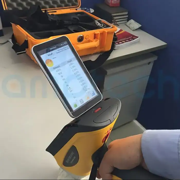 It uses X-ray fluorescence (XRF) technology to conduct non-destructive testing, allowing users to analyze the material composition without damaging the sample.