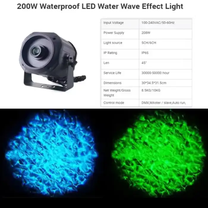 The AOPU LED Water Wave Projector has a power output of 200W.