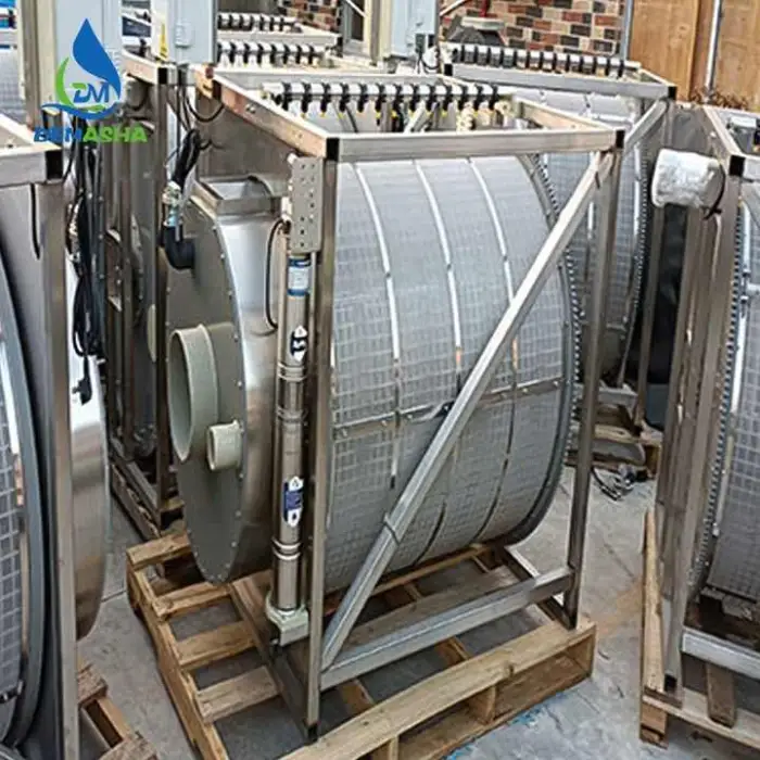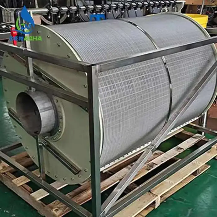 The rotary drum filter is packaged in a wooden case for safety during transportation.