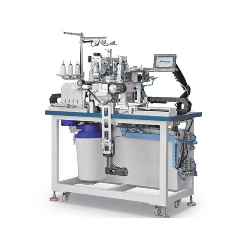The AS-Q375S is designed to efficiently attach elastic waistbands to underwear, streamlining the production process for garment manufacturers.