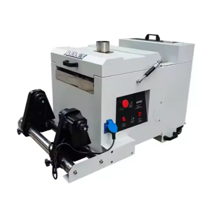 The shaking and heating powder dryer helps transfer the design onto garments efficiently, ensuring a smooth finish.