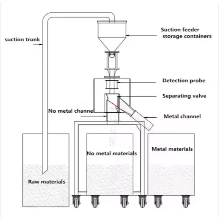 The machine detects all types of magnetic and non-magnetic metals, including steel, stainless steel, aluminum, and more, even if they are enclosed within the product.