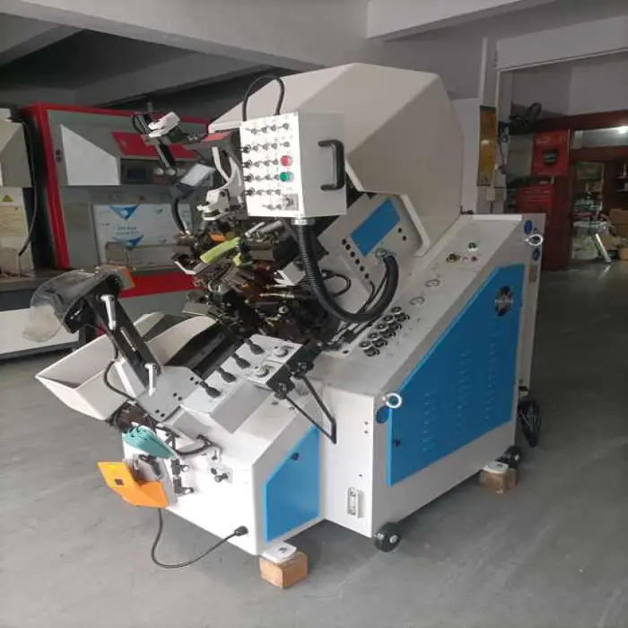 The machine is used in the manufacturing of casual and formal shoes, production of sports footwear, and shoe repair.