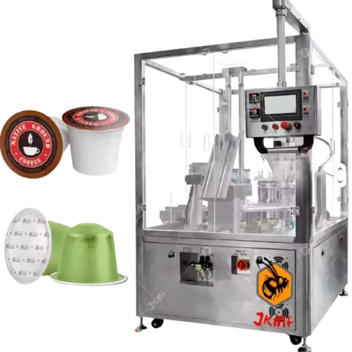 The machine uses a hot sealing method to securely seal the coffee pods.