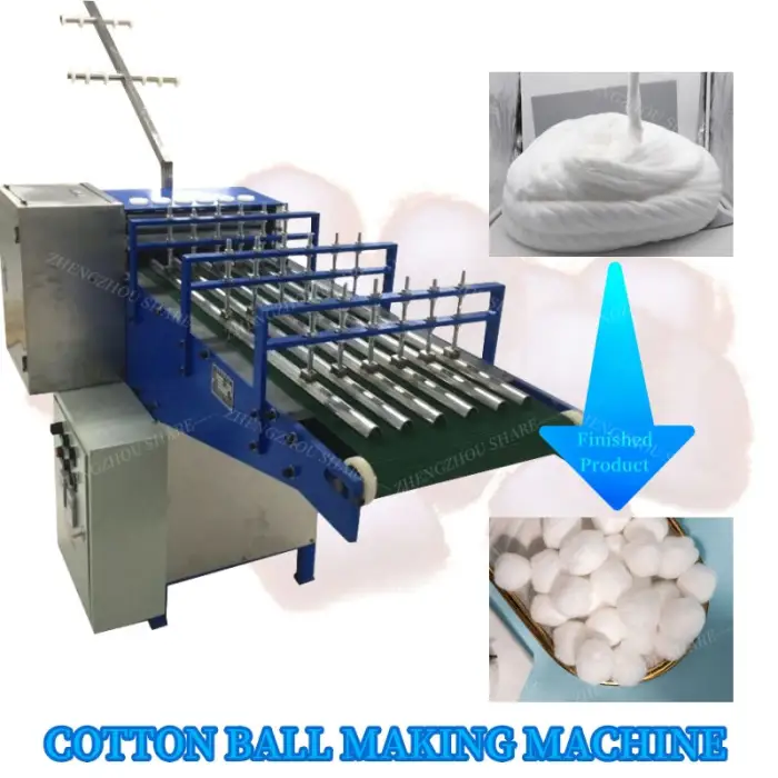 The machine is specifically designed for making cotton balls from surgical cotton threads.