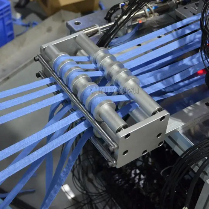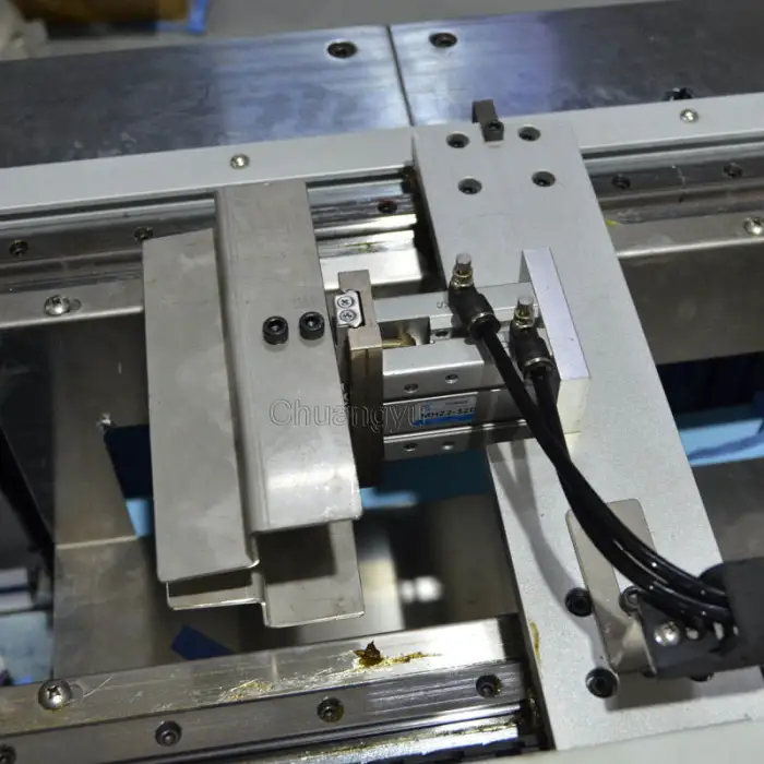 This is an automatic label cutting machine specifically designed for lace and textile materials.