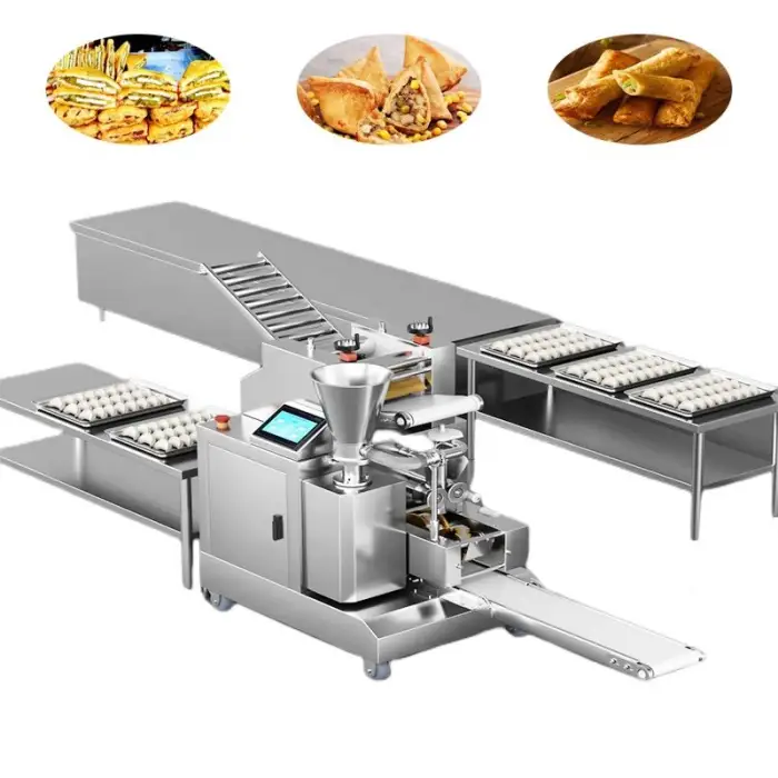 The machine can create various types of stuffed foods, including samosas, momos, and dumplings.