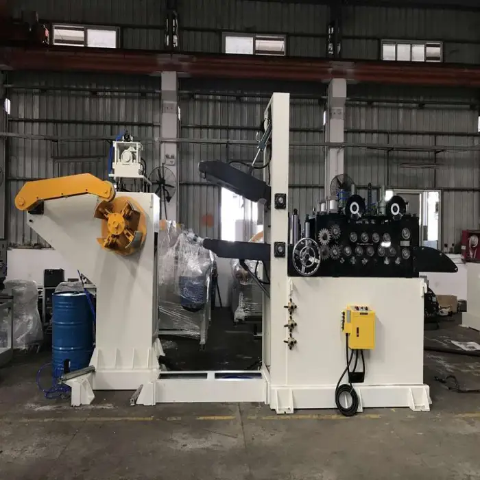 The primary function of the machine is to efficiently uncoil and straighten sheet metal strips for the steel coil stamping process.